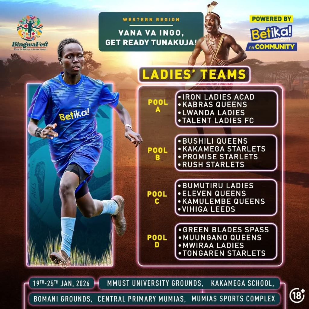 The 2026 BingwaFest Western Edition officially kicked off yesterday across various grounds in Kakamega County, with Women’s Football Match Day One taking center stage. The tournament opened in spectacular fashion, showcasing competitive fixtures, rising talent, and strong community support for women’s football.