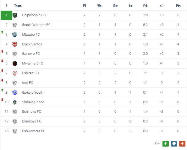 - Chipolopolo FC received a 2-0 walkover vs Eshikomera FC