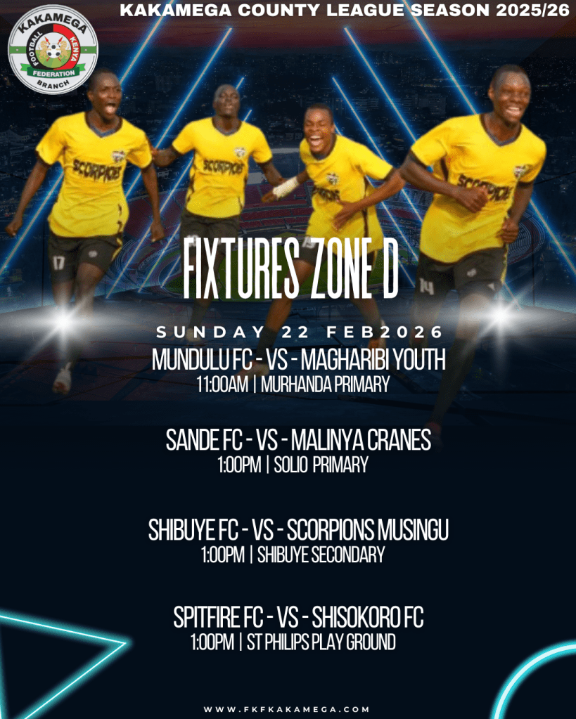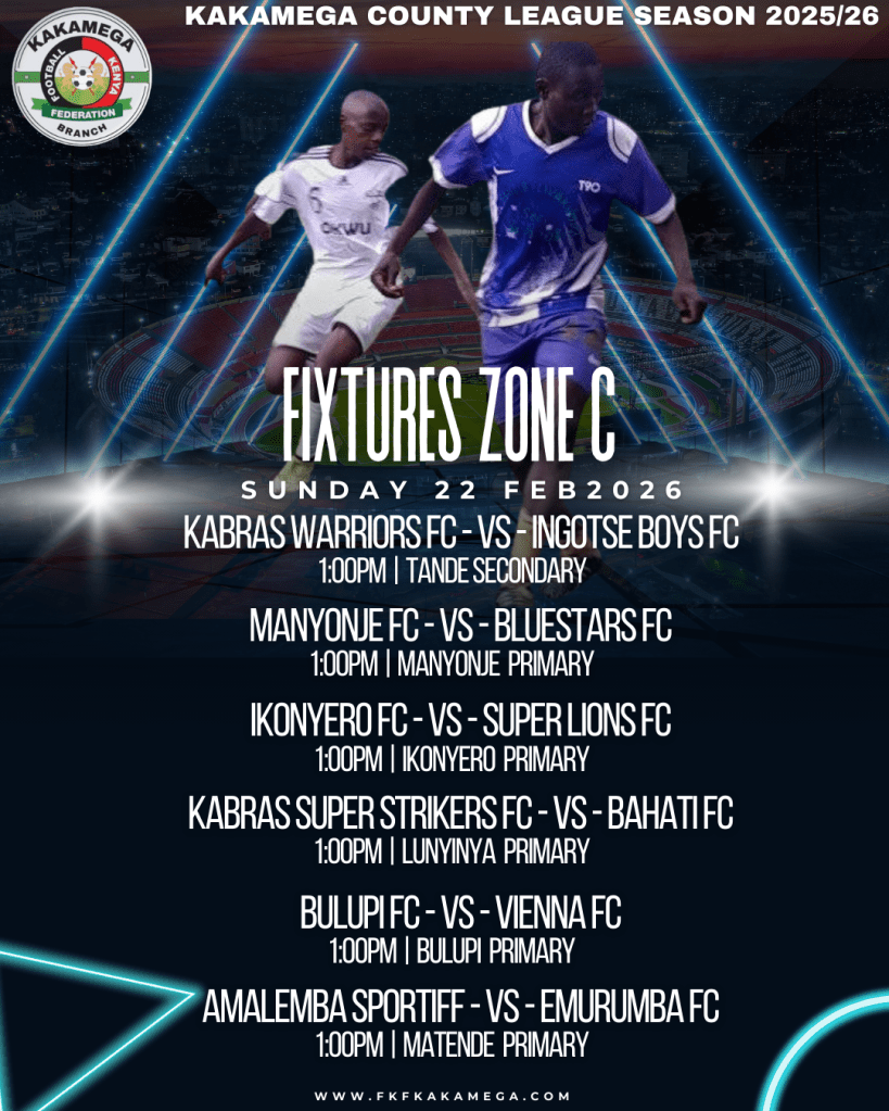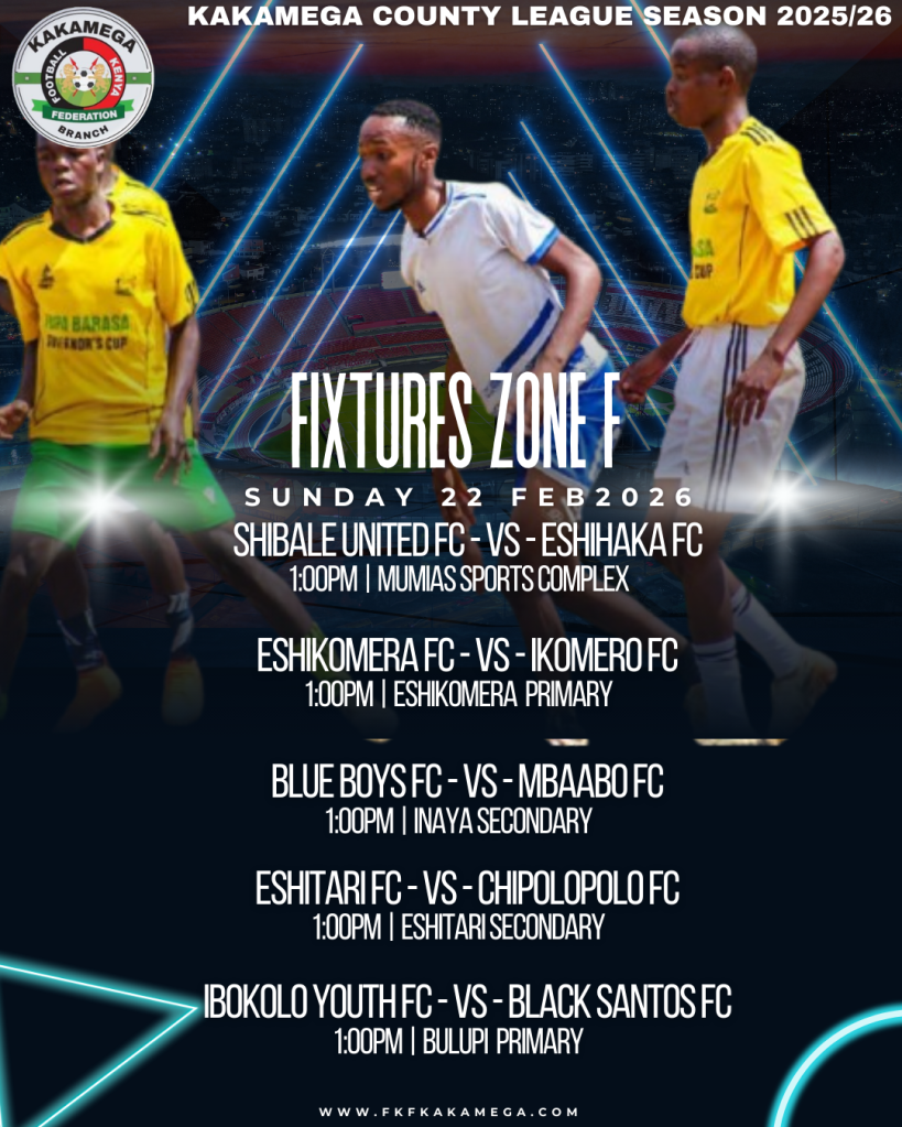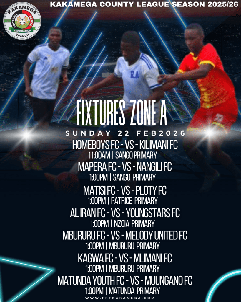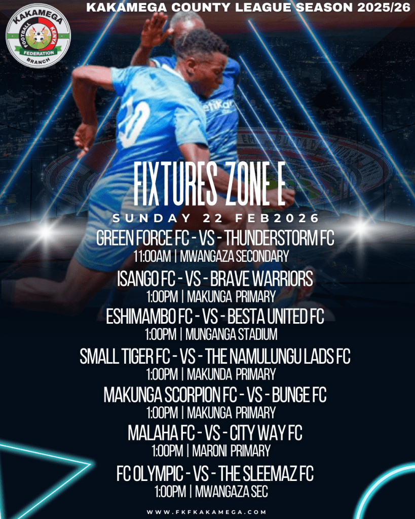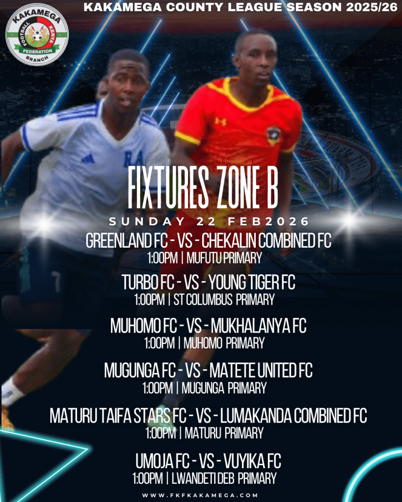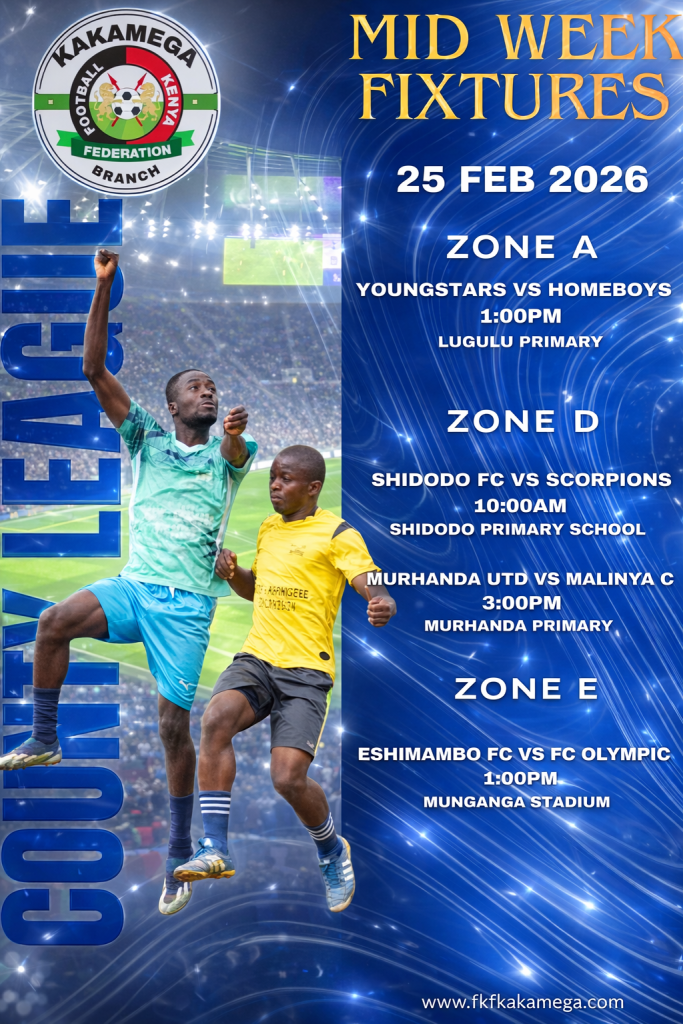 The Football Kenya Federation Kakamega County League lived up to expectations with an action-packed round of fixtures played on Wednesday, February 18th and Sunday, February 22nd, 2026. From dramatic late winners to dominant scorelines and walkovers, teams across Zones A to F battled fiercely as the race for supremacy gathered momentum.