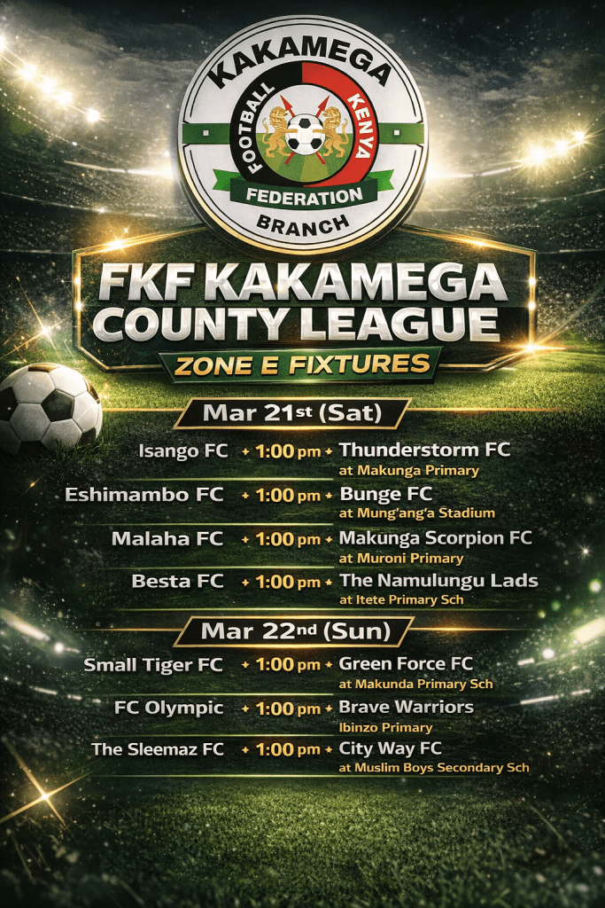 It was yet another electrifying weekend in the FKF Kakamega County League as teams across Zones A–F delivered thrilling encounters packed with goals, cards, walkovers, and standout individual performances. Here’s a full breakdown of all the action without missing a beat:
