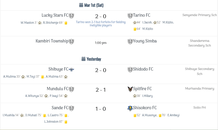 Sunday was an action-filled Zone D match day 3, as Lucky Stars hosted Young Simba at Senyende Primary, where both teams showcased their skills in a highly competitive atmosphere. Meanwhile, Sande FC hosted Tarino FC for a thrilling match that ended in a dramatic 2-1 beating at Solio Primary, with both sides battling fiercely for control of the midfield. In a parallel encounter, Shibuye FC faced off against Spitfire at Shibuye Secondary for a 1-1 draw, adding to the excitement of the day. The final Zone D fixture for the weekend was the much-anticipated clash between Mundulu FC and Kambiri Township at Murhanda Primary. The host team, Mundulu FC, displayed remarkable tenacity and finally triumphed over the visitors with a 2-1 beating. Tensions rose as the visitors received two yellow cards; K. Jeff was cautioned in the 5th minute, while F. Omondi followed suit with his yellow at the 56th minute, impacting their momentum. The visitors were the first ones to score in the 17th minute thanks to an impressive strike from M. Geofrey, igniting hope for their supporters. However, the home team made a spirited come back in the 36th minute when C. Jackson equalized, sending the home crowd into a frenzy of cheers. As the clock ticked towards the final minutes, at the 73rd minute, P. Isayi delivered a stunning shot that secured the winning goal for the home team, although he was subsequently yellow carded in the same minute, a reminder of the intense nature of the match. The day was filled with drama, excitement, and unforgettable moments, marking it as one of the highlights of the Zone D tournament.
