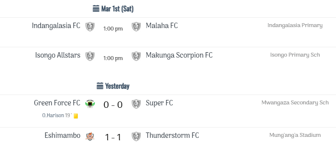 On Sunday, Eshimambo FC hosted City Way FC at Mun’gan’ga Stadium, where they secured a hard-fought 1-0 win against the visitors in an intense match that kept fans on the edge of their seats. A decisive goal from J. Sakwa in the 40th minute assured the hosts of the victory, showcasing their tactical prowess and resilience throughout the game. The atmosphere in the stadium was electric, with supporters passionately cheering for their team, creating a fortress-like environment for the players. Meanwhile, in another exciting fixture at Makunga Primary, the Makunga Scorpions hosted Malaha FC in a match that promised thrilling moments and competitive spirit, as both teams aimed to claim valuable points in the league standings, making it an exhilarating day of football for the fans in attendance.